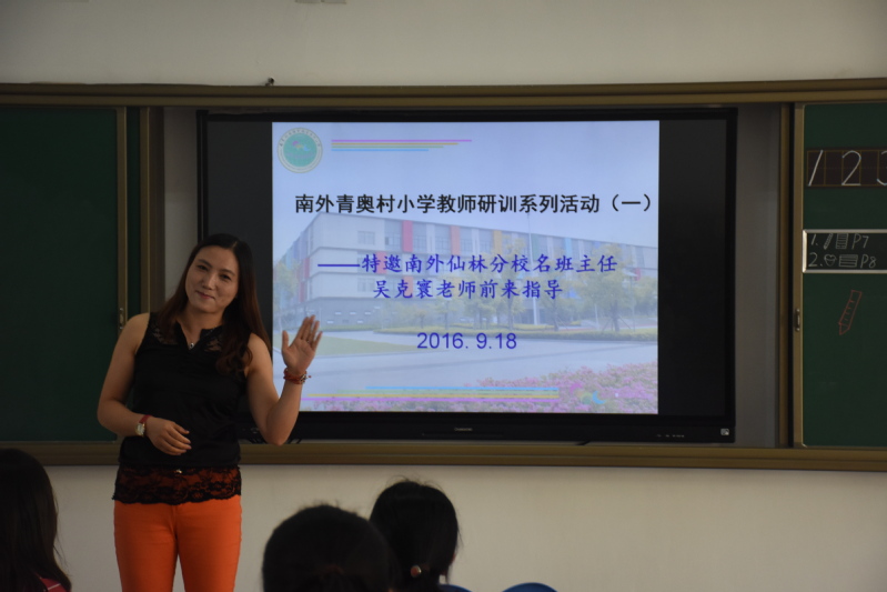冰心老师说过,教师的现在决定孩子的未来。而在老师中,班主任是陪伴孩子们时间最长的。2016年9月18日下午,南外仙林分校名班主任吴克寰老师来到南外青奥村小学,为在座的年轻教师作指导。
