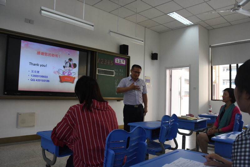 她隆重介绍了前来指导的吴克寰老师,吴老师是低年级组语文备课组长,是拥有20多年教育经验的资深班主任。吴老师带的班学风正,常规好,成绩优。
