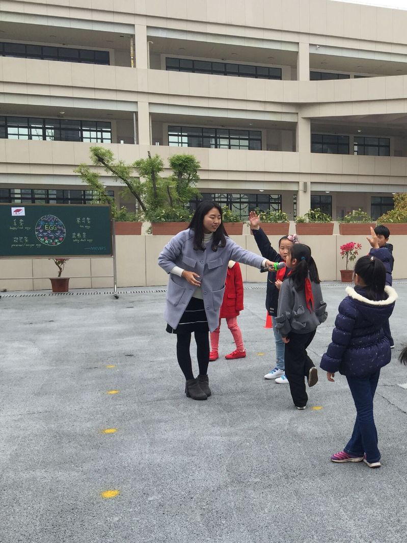 之后,外教Monica将制作完成的绚烂缤纷的彩蛋藏于二楼平台大大小小的花盆内,让学生亲自体验一把复活节的传统“找蛋游戏”,“Is it in this flower pot? Let me see?” “Oh, yes here it is. ”孩子们在找蛋过程中感受到了浓郁的复活节文化,在真实的情景中自然而然地操练起了英语口语,体验了乐趣,享受了快乐。