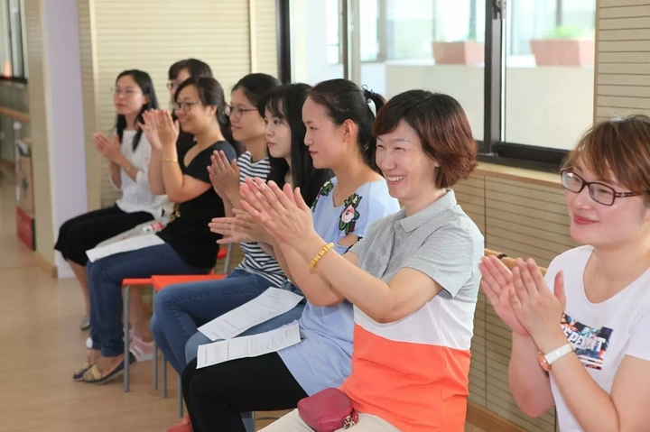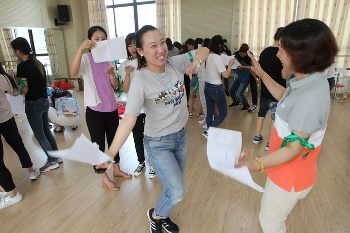 在朱道亮副校长的激情宣布中,培训第一场——教师训练营活动开始了!训练营在每一位老师为生命升旗的庄严的晨曦礼中拉开序幕。通过破冰游戏“喊山”、交友游戏“您好”,新老教师很快地融合在一起。活动主持人高级教师易能江先生凭借随机分配的诗词卡片将教师分成四个小组,并分别雪松、梅花、梧桐、茉莉为组名,这些不仅是美丽南京的代表,还象征着我们南外青奥村人的优秀品格。随后开展的“阿拉伯飞毯”、“爱心天使”、“悄悄话”等趣味活动的,帮助教师在迅速拉近彼此关系的同时,还提升教师的核心素养和实践能力,也拓展了教育视野,体验了综合课程的魅力。通过本次活动,教师们不仅交到了新的朋友,更切身地感悟到了寓教于乐的高效性、团队合作的重要性、诚心正意的必要性……着实收获颇丰、受益良多!