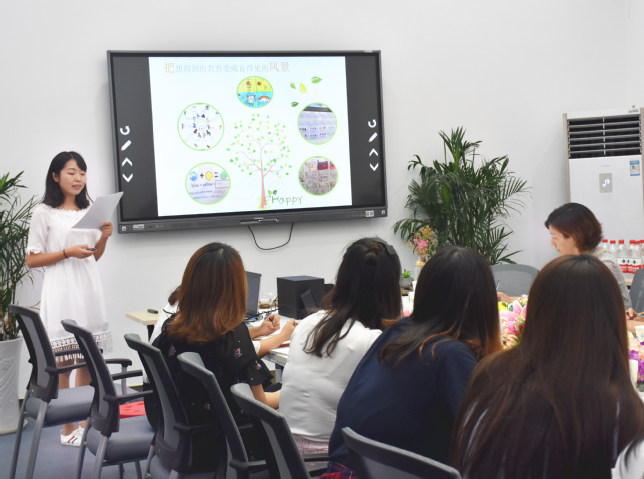现代社会的信息更迭日新月异,作为教师要时刻保持一颗与时俱进的心,南外青奥村小学的老师就是如此要求自己的。这不,培训的最后一天下午,暑期学习归来的张文苑主任和周培蓓主任正向大家分享她们的所学呢!