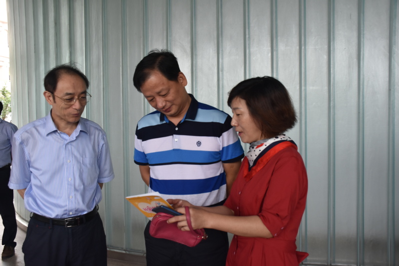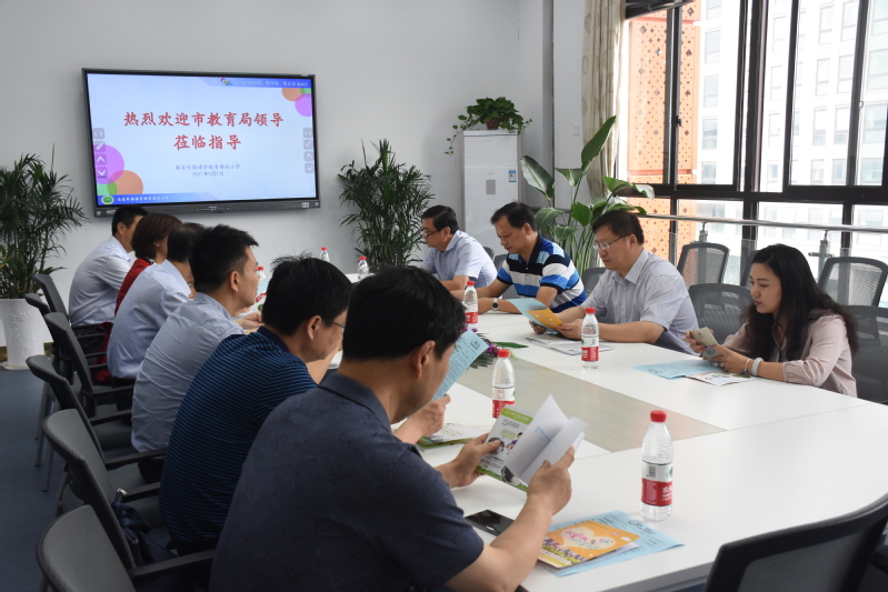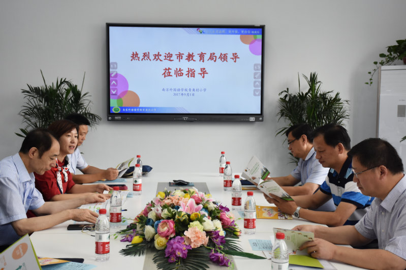 随后,蒋校引导视察小组入座三楼会议室进行进一步的交流。大家津津有味地翻阅着早早准备好的南外青奥村小学绘本等资料,并对我校努力把“想得到的教育,变成看得见的风景”的办学愿景表示赞同。视察最后,潘局对我校的办学工作提出了指导性的建议。