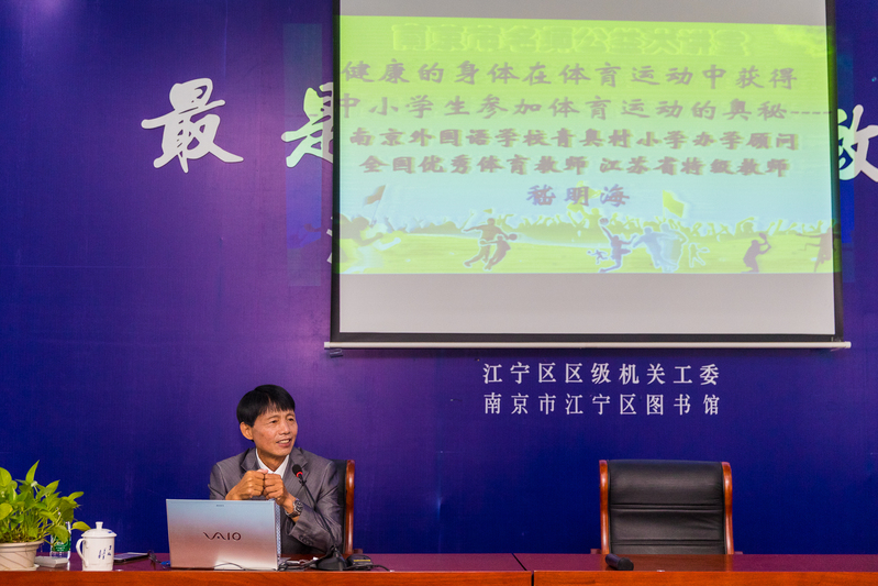 9月8日下午,全国优秀体育教师、江苏省著名特级教师、我校办学顾问嵇明海老师受邀坐堂“南京市公益大讲堂”,开讲了“健康的身体在体育运动中获得——中小学生参加体育运动的奥秘”。