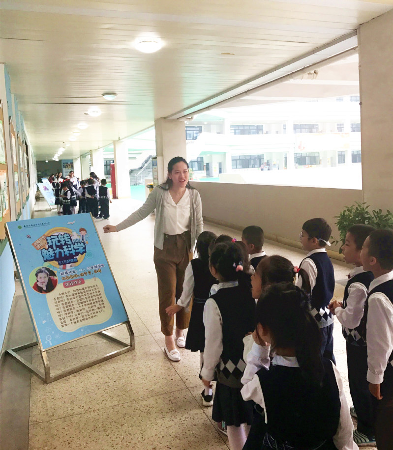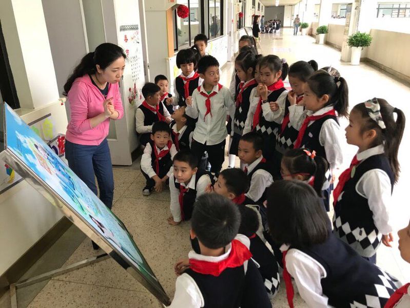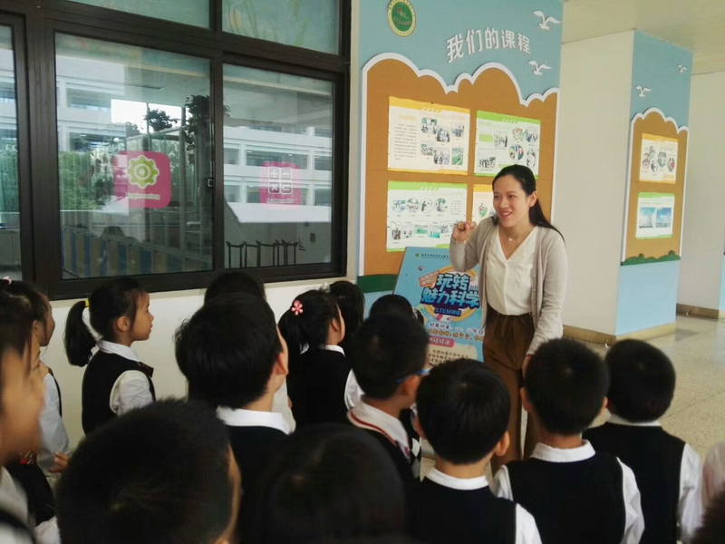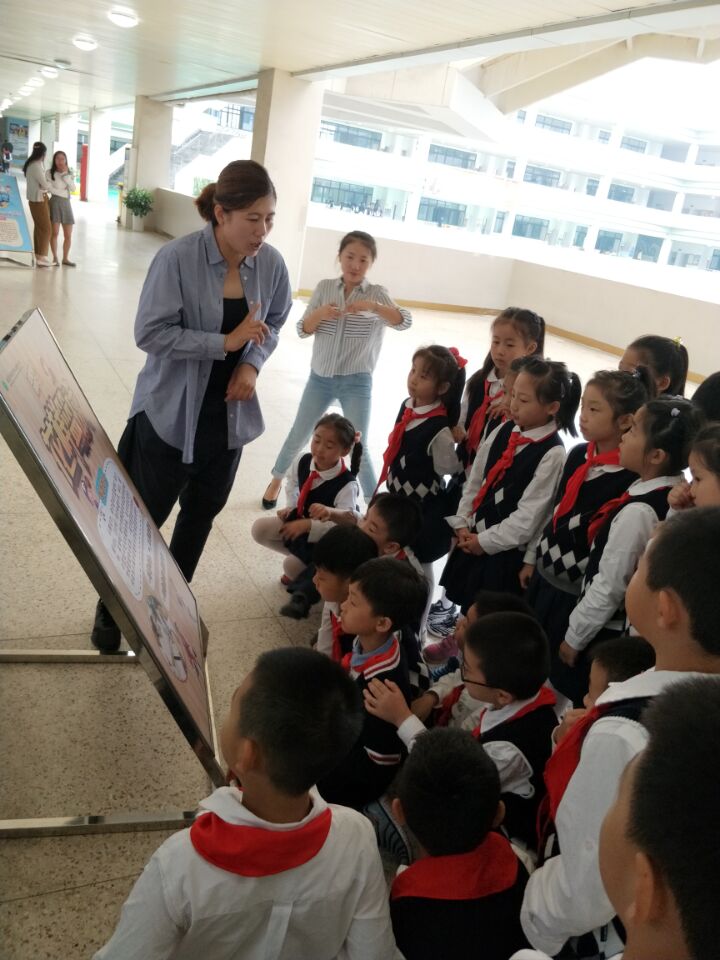 二十一门课程,二十一块展板,每块展板上都有课程介绍。孩子们在教育小组老师的带领下,井然有序地开始了自己的课程探索之旅,每来到一处都在静静地听课程负责老师绘声绘色地讲解,大家迫不及待地选择自己喜欢的课程,现场热闹非凡,在校园里形成一道靓丽的风景线。