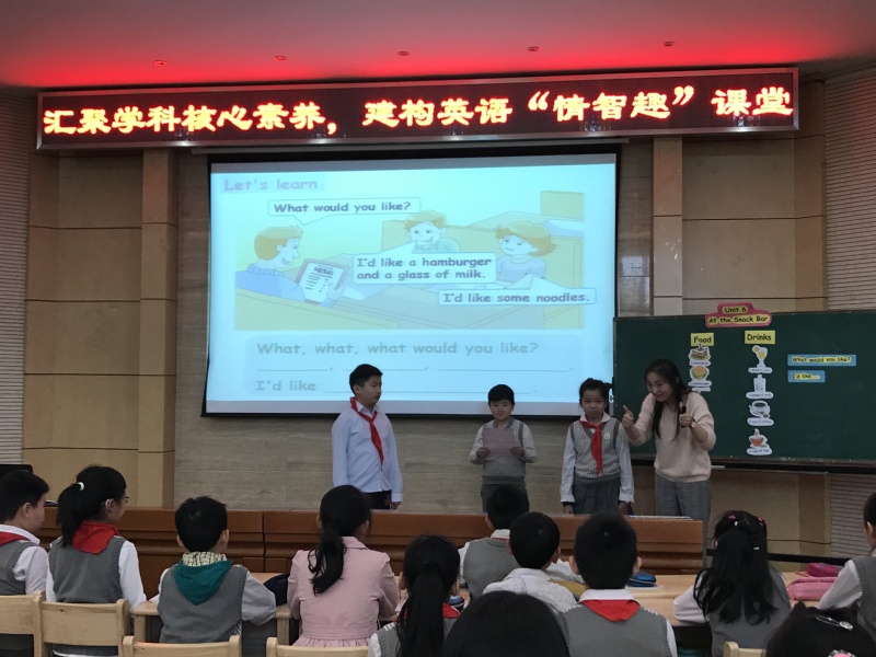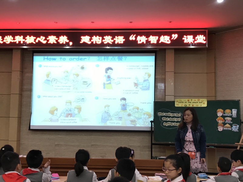 这次活动由第四盟区首席老师、南外青奥村小学周培蓓主任主持,围绕“汇聚学科核心素养,建构英语情智趣课堂”展开。活动采用同课异构的方式,执教内容为四年级上册Unit6 At the snack bar。来自建邺实验小学的赵志慧老师,南外青奥村小学的盛佳老师和河西外国语小学的田文娟老师分别呈现了三节精彩纷呈又各具特色的英语课。
