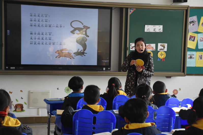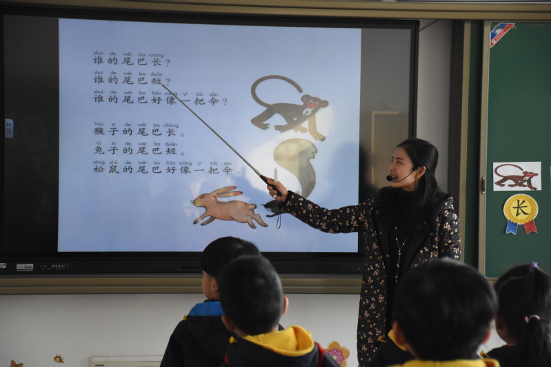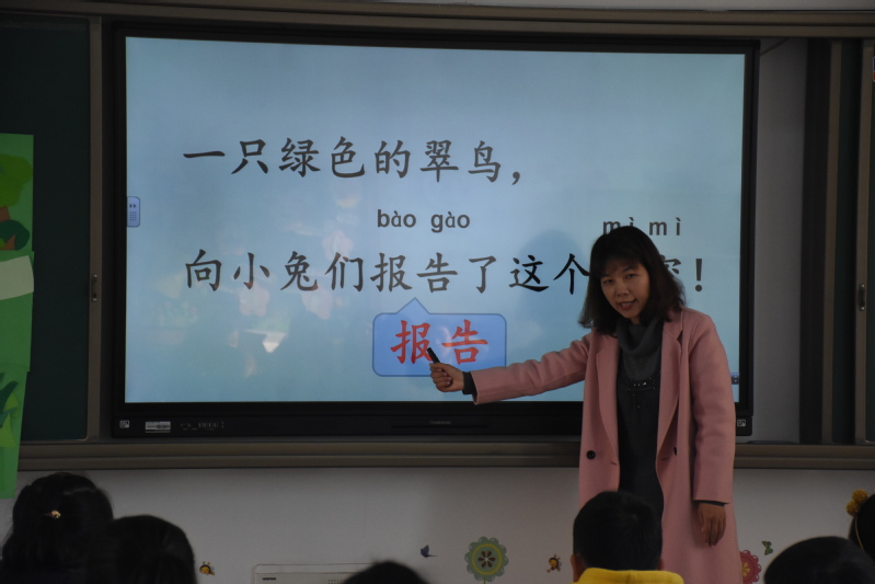 首先,两位成熟型的优秀老师带来了两节精彩纷呈的语文课。来自河西南外的张朝晖老师,把一年级部编版课文《比尾巴》上得有情有趣、有滋有味。接着,来自本校的贺丽老师,为孩子们创设了生机勃勃的绿色世界,在琅琅书声中,为大家呈现了童趣盎然的《绿色的和灰色的》。孩子们神采飞扬、意犹未尽的表情定格在课堂,精彩的表现也迎来了盟区老师们的阵阵掌声。