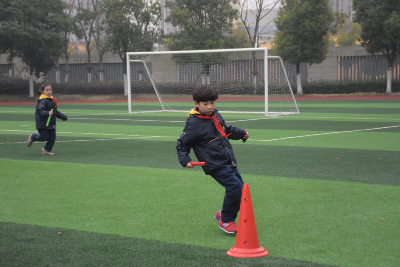 活动初始,体育组陈青红老师宣布了接力跑的相关规程。接着,同学们在陈老师的带领下进行了简短的跑前热身运动。
