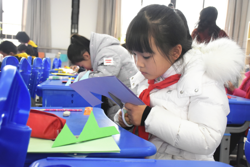 终于到了孩子们翘首以盼的“做花灯”环节,老师先展示了一些学生作品图及自己学做的花灯成品,让学生们有更加直观的感受。然后,就开始带着学生们一步一步制作花灯。学生们一个个睁着大大的眼睛,全神贯注地跟着老师折、剪、贴,期间,老师们也不断提供指导和帮助,场景十分温暖。学生们很用心,最后还拿出贴画对自己的“小花灯”进行装饰。放学时,人人提着一盏自己做的花灯开开心心地回家了。