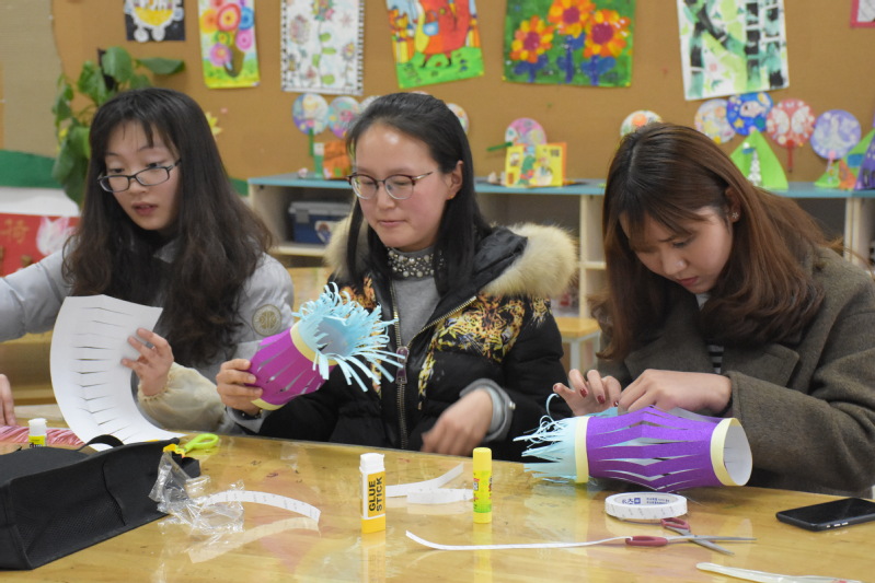 为使活动顺利开展,美术老师提前给老师们做了培训。瞧,他们做得多认真啊!