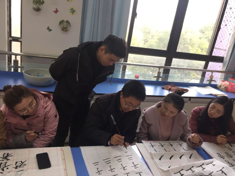 老师们热情高涨,虚心静听,用心揣摩写字、练字的方法,迫不及待地拿起毛笔认真地临摹,有疑惑的地方立即向老师请教,仿佛又回到了学生时代,整个教室充满浓浓的学习、研究的氛围。