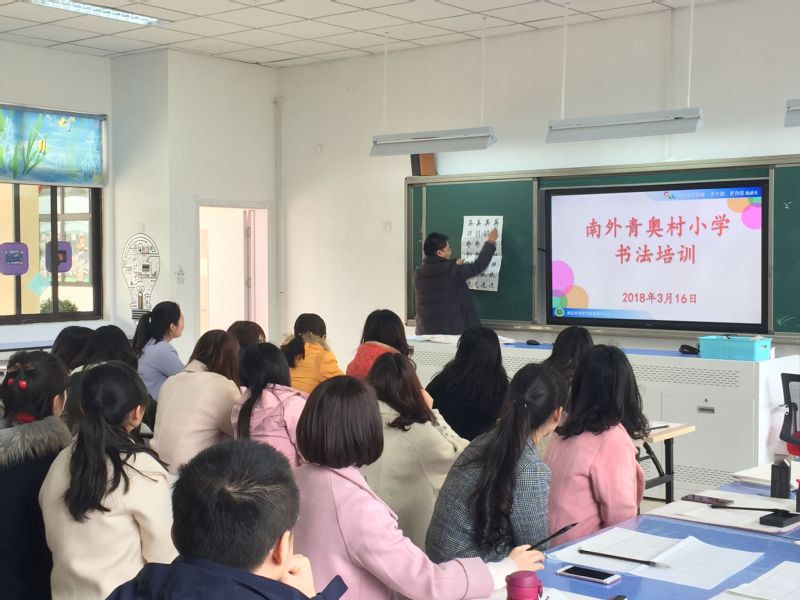 砚台高转,笔墨书香,南外青奥村小学在春光明媚的下午迎来了江苏省教育学会书法委员会副秘书长汪峣老师,全体老师齐聚二楼科学教师接受了书法培训。