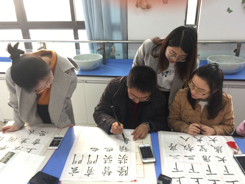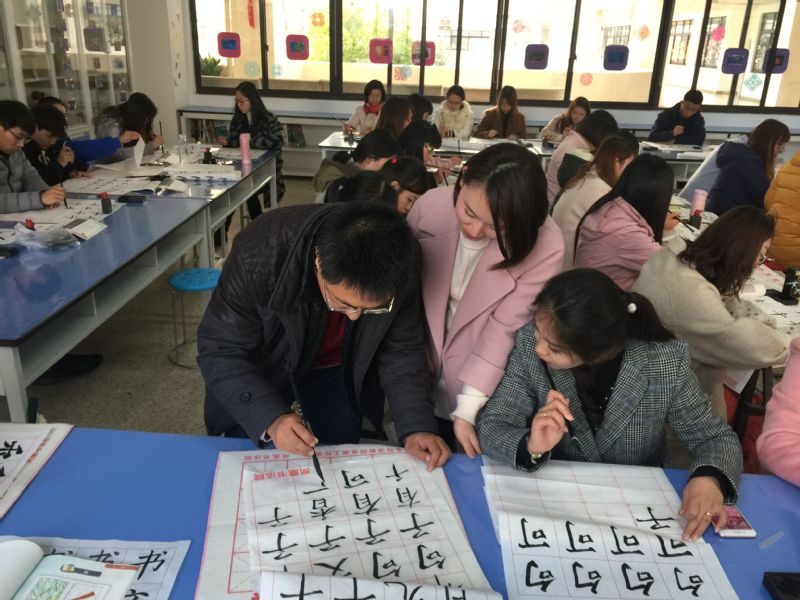 老师们热情高涨,虚心静听,用心揣摩写字、练字的方法,迫不及待地拿起毛笔认真地临摹,有疑惑的地方立即向老师请教,仿佛又回到了学生时代,整个教室充满浓浓的学习、研究的氛围。