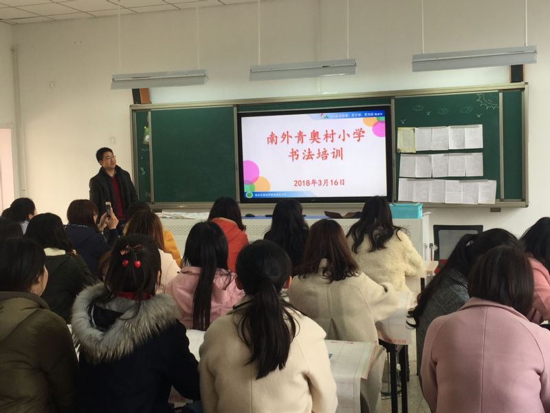 砚台高转,笔墨书香,南外青奥村小学在春光明媚的下午迎来了江苏省教育学会书法委员会副秘书长汪峣老师,全体老师齐聚二楼科学教师接受了书法培训。