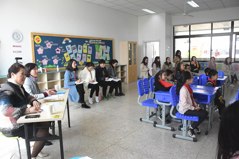 3月23日下午,朱老师来到南外青奥村小学,走进了英语组周培蓓老师的课堂。周老师呈现的是二年级朗文教材Chapter1 My favourite food.课程以孩子们流利的脱口秀开场,随着欢快的乐声,food train开过来喽。A train, apple train. B train, banana train。轻松欢快的乐曲一下子就把孩子们带入了食物的魔法课堂。周老师设置了一个个小任务、小环节让孩子们充分地感知英语,应用英语。朱善萍老师评价本节课灵动、有趣、深刻、融合。她指出,图片对孩子观察力的培养至关重要。课堂层层递进,孩子们完成了从语言输入到输出的过程,也养成了英文思维的习惯。