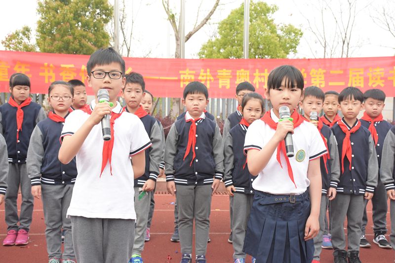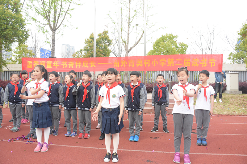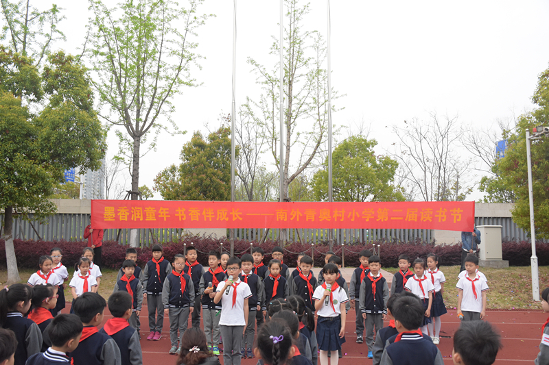 4月2日,迎着清晨的一缕微风,南外青奥村全体师生齐聚操场,举行“墨香润童年 书香伴成长”读书节开幕式。