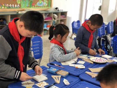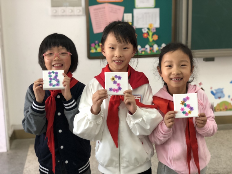 二(6)班孟楚乔妈妈教孩子们用干花作画,将艳丽多姿的花儿们用这样的方式留存在画布上,可以留住春天。制作时,孩子们先再画布上设计好自己想要的图案,再小心翼翼地用镊子将一片片干花粘在画布上,用自己的巧手一点点拼出色彩鲜艳的图案。孩子们专心致志制作属于自己的干花,课堂上呈现出一派温馨与和谐。