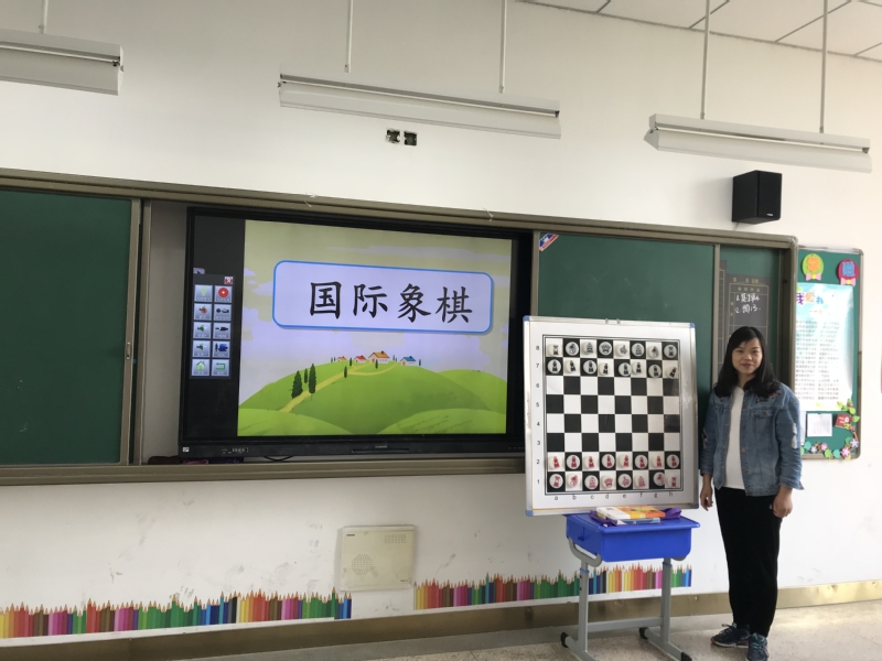 二(1)班马萌妈妈为我们带来了一节生动的国际象棋课,用儿童化的语言为我们讲述了黑白棋的故事,用形象的例子教会孩子如何布子、用棋,孩子们跃跃欲试,对国际象棋也有了更深的认识。