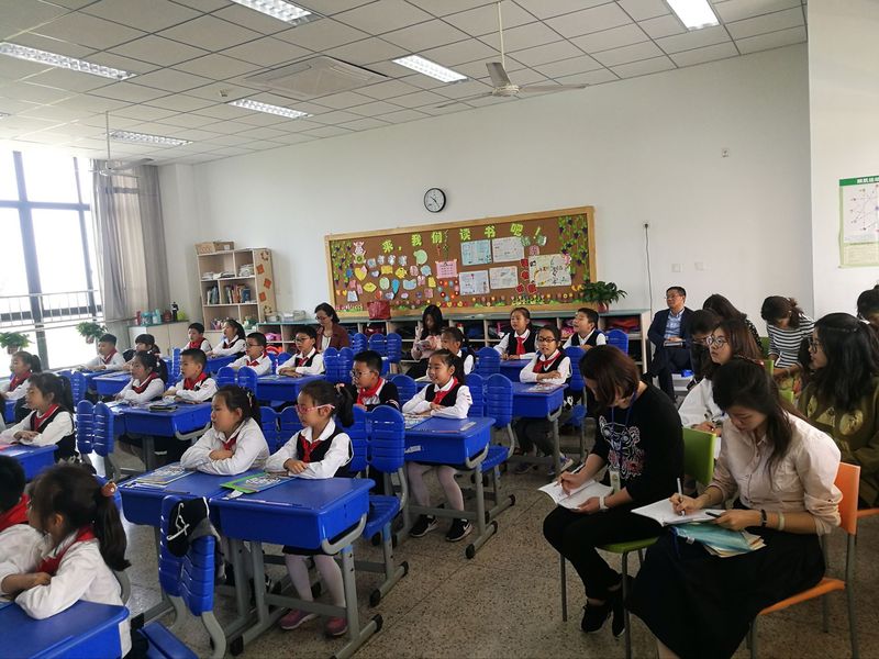 五月,明媚的春光悄悄地打破了校园的宁静。2018年5月3日,五一小长假的第二天早上,南外青奥村小学语文组迎来了“读演写”教材专家指导听课活动,建邺区进修学校副校长,江苏省特级教师胡明艳校长亲临指导。