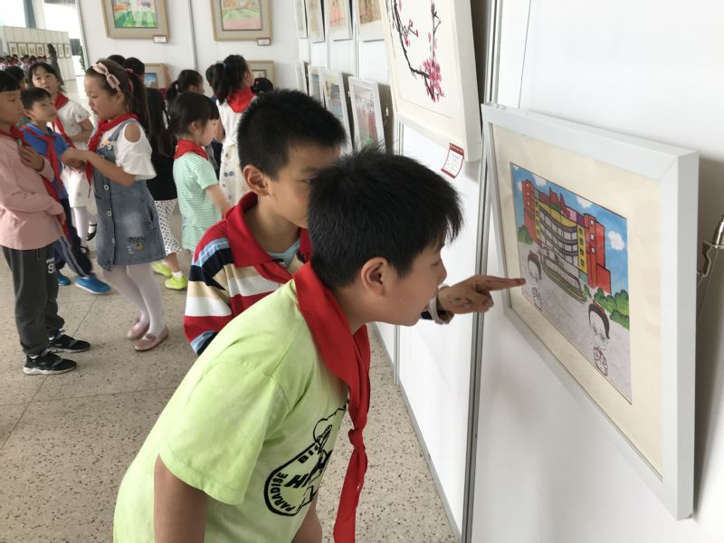 画展开幕仪式由艺术组严明和王硕两位老师共同主持。参加此次开幕仪式的嘉宾有南京外国语学校的曹启海主任、南京外国语学校仙林分校的美术特级老师王倩,南京外国学校青奥村小学蒋丽云校长、赵和春副校长、朱道亮副校长以及教导处的各位领导,兄弟学校的各位同仁。