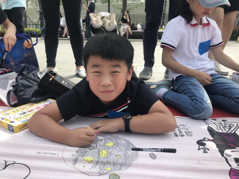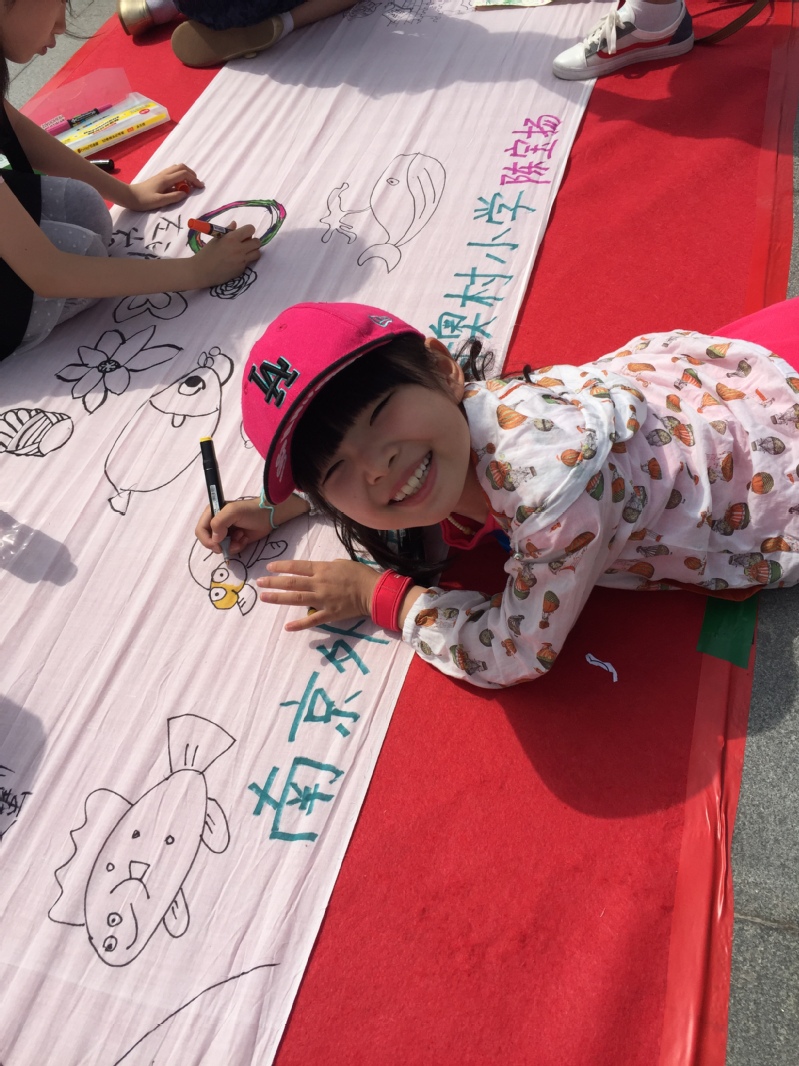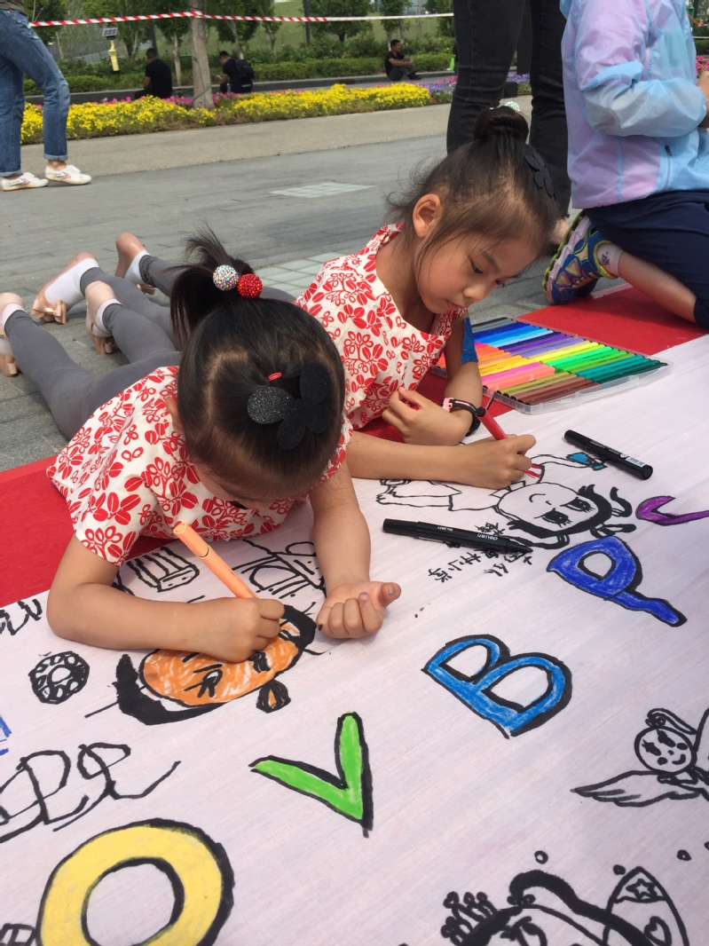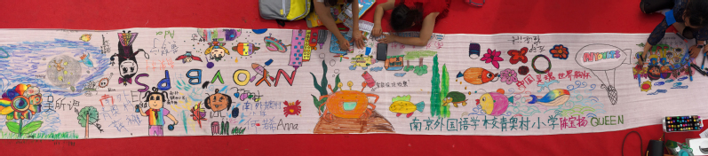 6月2日,孩子们依旧沉浸节日的氛围里,南京外国语学校青奥村小学的学生代表们和百名中外青少年儿童在彰显国际与文化的地标性建筑南京眼与旗阵广场前共绘百米长卷。本次活动以“梦想的未来”为主题,孩子们以笔绘梦,以画会友,用最闪亮的作品表达彼此心中的童梦世界。江苏省人民政府外事办公室的陈红清副处长为活动致辞并宣布活动开始。