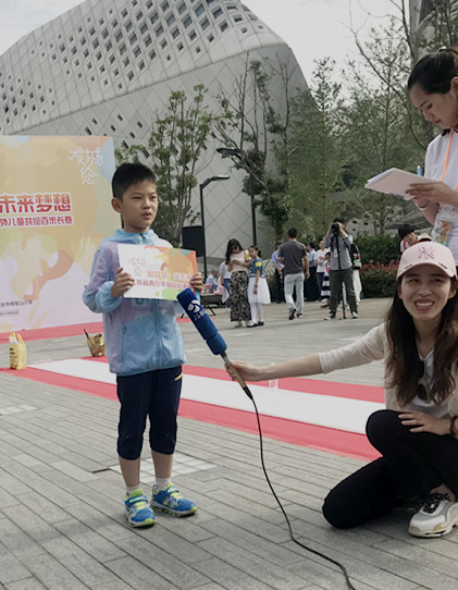 孩子们不仅在采访区分享自己的梦想,还可以在画卷上放飞想象,未来就在眼前!