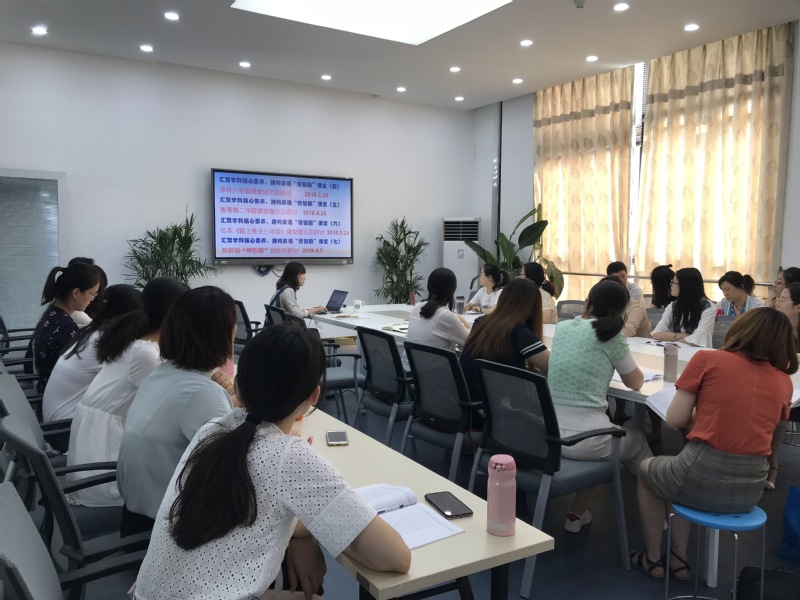 首先,吴玮老师以《童话园里的我们——核心素养下的建邺实小英语教研组活动总结》为题,介绍了建邺实小实英语组情智趣课堂研究的具体情况。他们虽然人数少,任务重,但老师们团结一心,携手共进,一年级来在构建英语“情智趣”课堂的实践中取得了很大的成果。这些成就不仅源于英语组扎实有效常规工作,落实到人的管理制度,更是源于他们在学科建设发展方面大胆地实践与尝试。