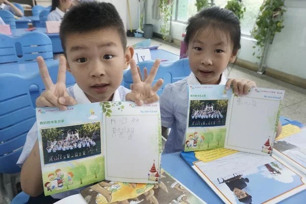 用心的一年级教师团队,满怀创意地将孩子们每一天的收获集结成册,仪式上,每一个孩子都领到了自己的那本“入学一周成长手册”,集体照、孩子的作品、好朋友的签名、老师的祝福全部囊括其中,孩子们爱不释手。此情景,令现场的家长为之动容。