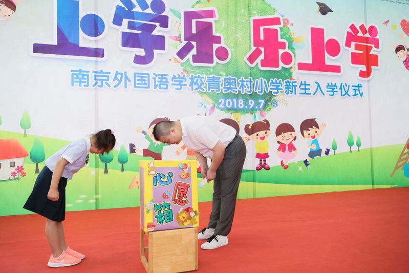 九月的校园,沐浴着微风,充满了新学年的希望。9月7日,南京外国语学校青奥村小学隆重举行以“上学乐乐上学”为主题的2018级一年级新生入学仪式。