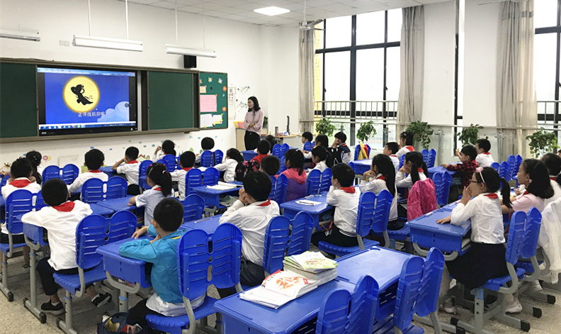 聆听完三位小朋友的朗诵,张老师选了主题字“月”,各班便玩起了“飞花令”,大家你一句我一句,最多的班级可是说了32句呢。同学们诵读经典,将活动推向了高潮。