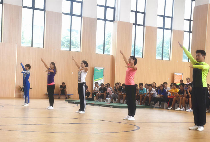 9月18日,首先进行了队列、广播操、武术、体操、田径等运动基本技能以及自选项目的比赛!