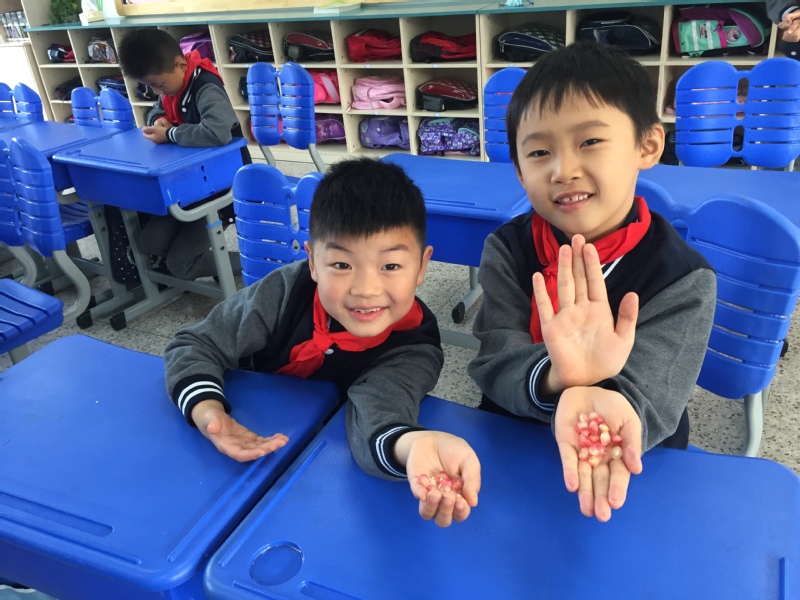 随后,科学徐老师还出了几道关于石榴的问题,同学们积极举手,迫不及待地想告诉大家他们在这一周收获的知识。“石榴的大房子里有几间小房间?”“常见的石榴分为几类?”“校园里的石榴树的栽培方式”等等,这些问题一个都难不倒咱们的石榴小专家。