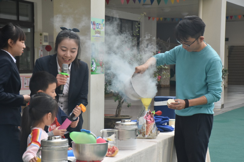 周三下午,由南京科技馆为我们带来的“-196℃的石榴”科技实验秀深深吸引了同学们的眼球。科技馆的老师们利用液氮速冻的原理冷冻了棉花糖、气球、石榴,尝到棉花糖的小朋友告诉大家,冷冻过的棉花糖变脆了,同学们听到之后既惊讶又佩服,纷纷感叹科技的神奇。在一片欢呼声和掌声中,同学们既增长了知识,又产生了对科学探究更加浓厚的兴趣。