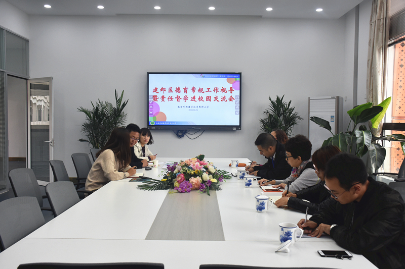 10月25日上午,建邺区德育视导组一行走进了南外青奥村小学,开展了德育视导工作。其间,责任督学王克菲和刘浩与视导组专家们以看、听、谈、调等形式,对学校的德育工作(校园文化、课间操、教师用语、家校合作)进行了全面的了解和视察。