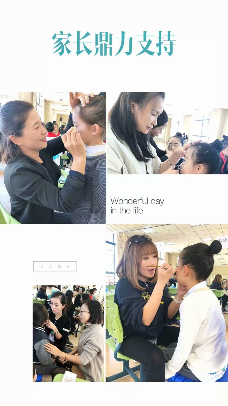 在备战的道路上,我们小运动员的家人们给予了充分的支持,每周一至周五的晚上,当校园逐渐安静时,我们的形体房依然灯火通明。家长们也在外面无怨无悔的等待着孩子们,风雨无阻。比赛当天叶知言妈妈、杨紫尘妈妈、金赵欣慧妈妈、汤田里彩妈妈、任雨清妈妈积极报名协助体育组全体成员完成孩子的赛前化妆工作。在比赛现场,孩子们的家长皆到场给孩子们助威,给孩子们加油助威。奖杯的背后正是有他们作为我们坚实的后盾,才能让我们更加无畏前行。