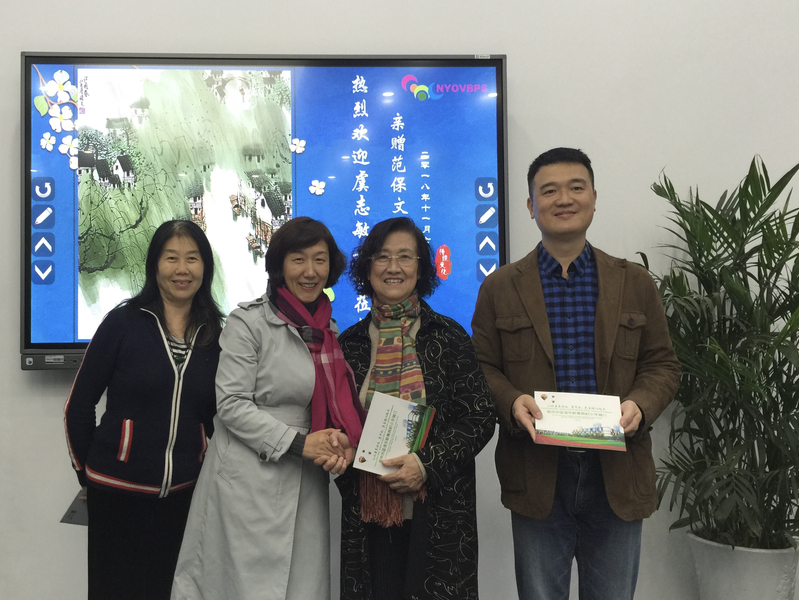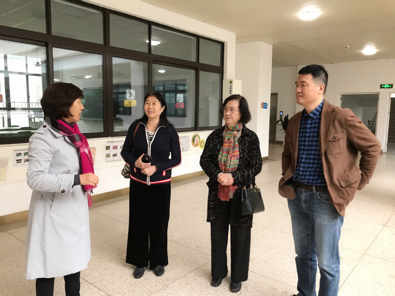 虞奶奶在蒋丽云校长的陪同下,参观了校园,一同参观的还有范先生之子范辉先生和虞导的学生张佳佳导演。