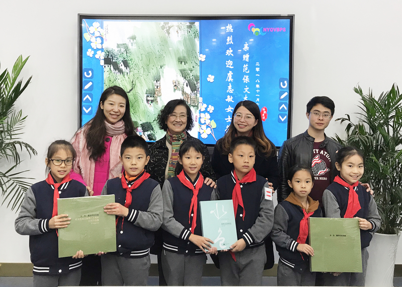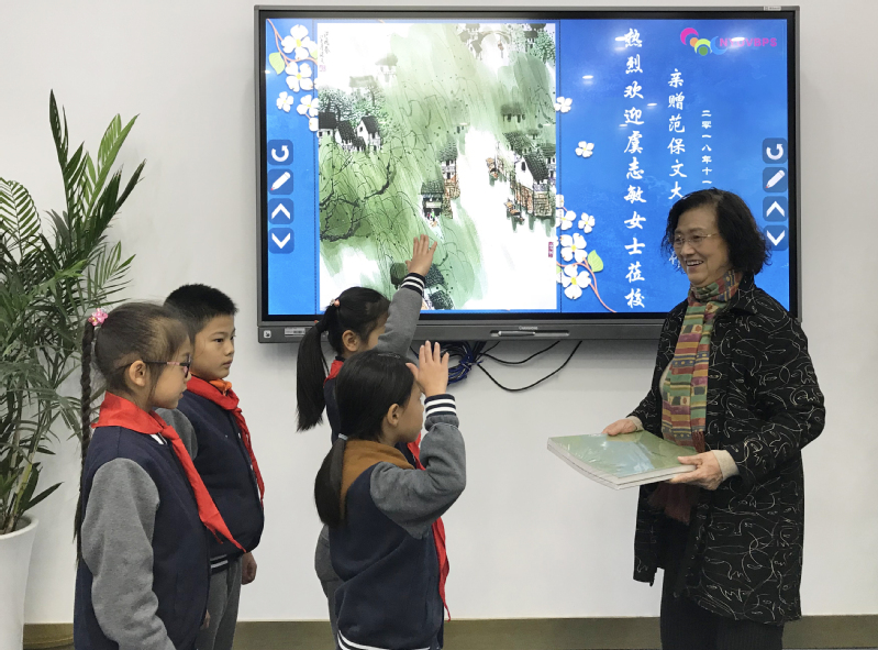 亲赠仪式上,虞奶奶和我校美术组教师、中国画社团学生代表亲切交流。交流中,虞奶奶充分肯定了我校关爱儿童、为儿童办美好学校的高品质追求。希望青奥村的孩子们能在温暖开放的环境中,感受中国画之美,学习传承范老师中西融合的独特画风,将范老“水色有痕”的独特绘画魅力继续发扬光大。