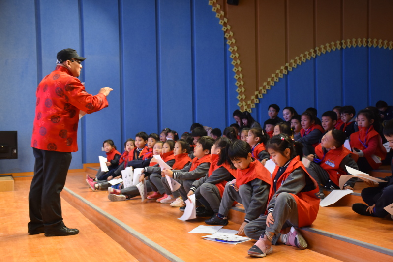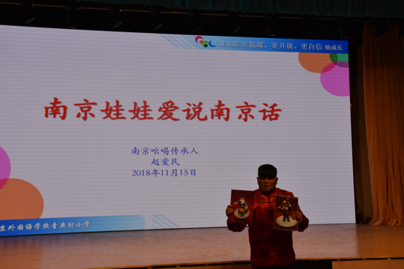 11月15日中午,南外青奥村小学刚刚尝试启用的小剧场里响起了阵阵吆喝声,原来是南京吆喝非遗传承人赵爱民爷爷来到了小剧场,为南外青奥村小学记者站的孩子们开课啦!