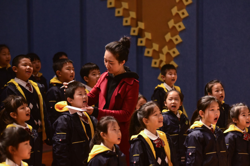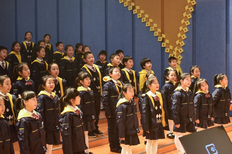 早晨8点一刻,“声声”合唱团的小小团员们就穿着整齐的校服在校园的儿童剧场集合,从练声的状态中可以看出,他们今天格外的认真。