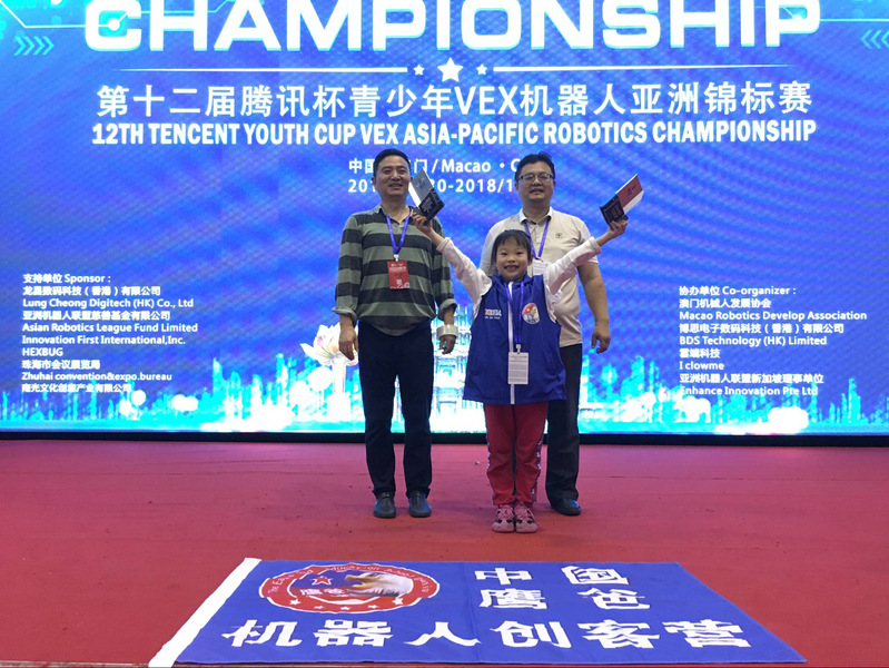 12月1日,2018第十二届腾讯杯青少年VEX机器人亚洲锦标赛决赛于澳门开赛,我校一(1)班刘宸羽同学沉着应战,荣获季军!