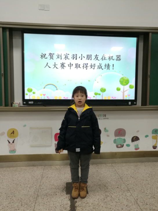 赛前,刘宸羽同学和她的队友们于11月24日和25日参加了在苏州中学举办的2018首届江苏省VEX机器人工程挑战赛总决赛并荣获小学组冠军!此次决赛前一天,一(1)班全体同学专门录制了视频为身在澳门的刘宸羽加油打气。决赛中,刘宸羽同学沉着冷静,出色发挥,再次打出了满分的成绩,最终按时间排名获得季军,为全队夺奖立下汗马功劳。
