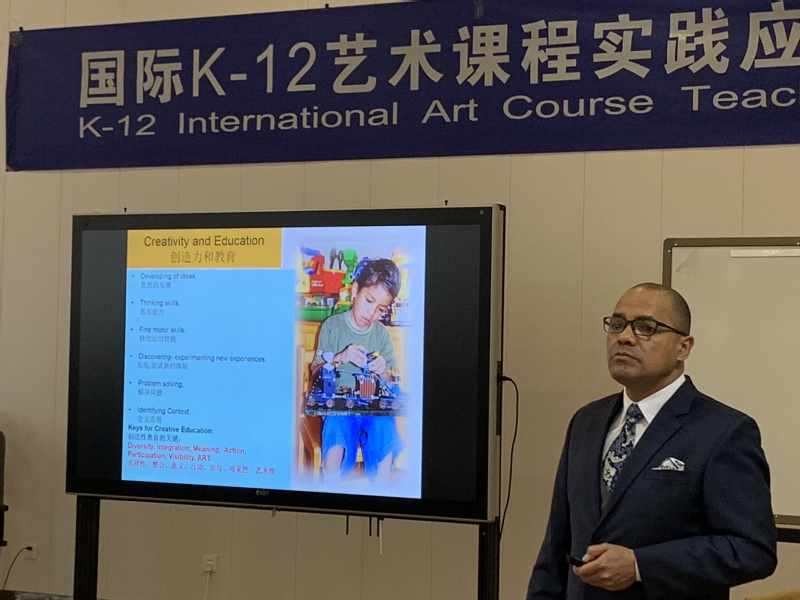 担任此次教研活动的主讲导师Martin Moratillo来自秘鲁,是国际艺术家与美国国际学校k-12资深美术教师,拥有丰富的美术教育理论与实战经验。曾获得联合国教科文组织的奖学金,长期担任英国和美国等学校的客座艺术家、艺术系主任和IB文凭协调员与考官。他以国际化的视野,深入浅出、形象深动的讲演不断冲击着研修学员的思考力,带来一个又一个惊喜。