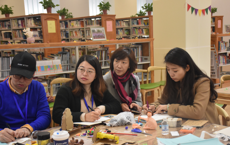 课程中,Martin老师还以泥塑老虎为例,用小组合作的方式设计了课程GANAG。他高度赞扬了研修教师团队合作、主动探究的学习氛围,特别称赞了我校美术教师团队巧妙地将中国戏剧文化融入了现代设计的作品。