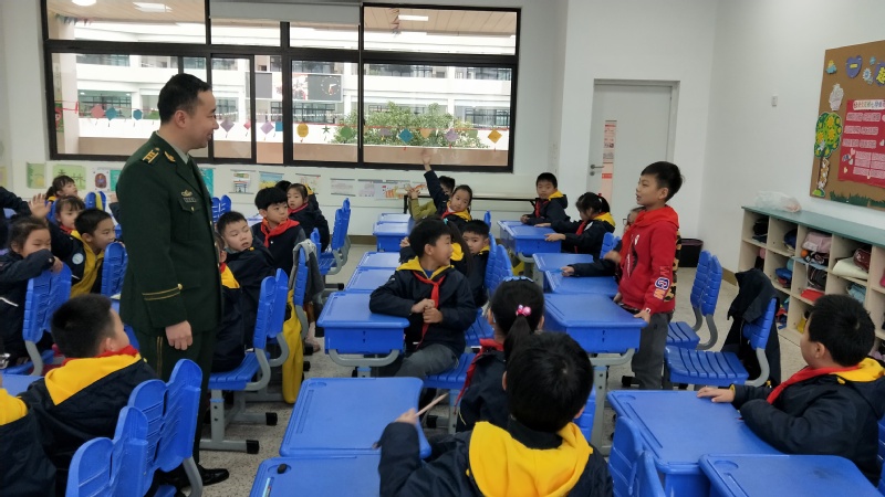 二(5)班杨韵瑾爸爸为大家带来了精彩的一课《部队的故事》。韵瑾爸爸给大家分享了部队的生活。他首先分享了武警的职责,每一次抗洪救灾,总能看见武警官兵的身影。然后,他介绍了武警所使用的装备。从狙击枪、步枪、手枪,到装甲车、坦克等。孩子们听得津津有味,他们对部队生活充满了好奇,热情高涨,提出了一个又一个的问题。