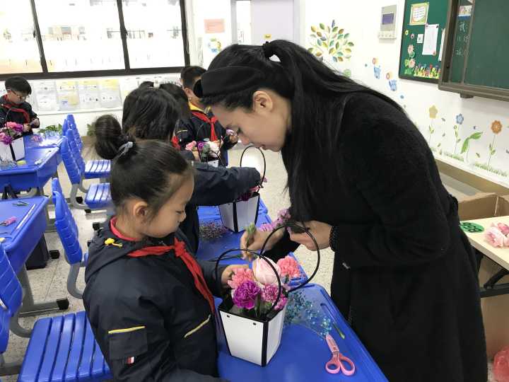 二(2)班李骐羽妈妈为同学们呈现了一堂非常精彩、有趣的插花课堂。李骐羽妈妈先和孩子们讲了花艺的相关知识,孩子们听得十分认真!随后,大家人手一份材料,在李老师的指导下,一步步进行创作。孩子们全情投入,现场氛围非常热烈!瞧!孩子们的作品多漂亮呀!
