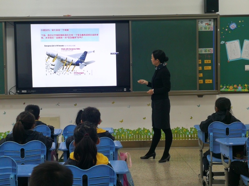 一(4)班的杨洲宁妈妈为孩子们带来了一节“航空安全”课堂,让孩子们乘坐“迪士尼班机”感受了航空安全防护的VIP。孩子们在了解航空安全防护知识的同时,还知道了当飞机遇到突发事件时,应该怎样进行自我保护。通过小组合作,孩子们亲身体验了救生衣、氧气面罩的使用,让航空安全防护走进生活。最后,每个孩子都收到了来自杨妈妈精心制作的“猜猜看”信封,里面藏着航空知识的小问题和小礼物呢!孩子们更是欣喜万分!