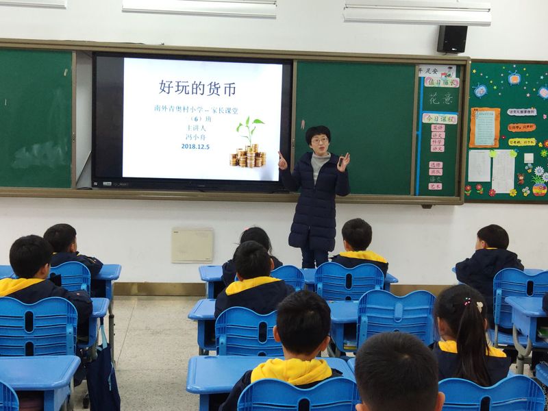 一(6)班的王烁童妈妈给孩子们带来了好玩的货币知识。她从货币起源开始说起,用讲故事的形式给孩子们讲述货币的作用,站在国际层面给孩子们介绍了国际主要货币以及主要货币之间的汇率兑换。课堂内容有趣丰富,浅显易懂,深受孩子们的喜爱。