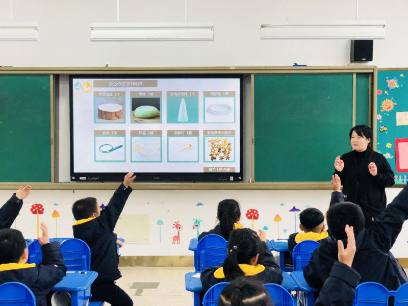 “一(8)班的小朋友们好,我是朋朋,欢迎来到我的朋朋手工课堂,今天我要带着你们一起制作圣诞树”,允薇妈妈亲切的招呼吸引了班上所有的孩子,看着眼前的材料包,宝贝们都跃跃欲试。首先,允薇妈妈先带着小朋友了解了圣诞节,认识圣诞节里的圣诞元素。接着,允薇妈妈便带着孩子们动手操作起来,小朋友们看得仔细、听得认真,一个个“埋头苦干”,即便对他们来说有些挑战,但他们的脸上一直洋溢着笑容。允薇妈妈非常耐心地帮助孩子们解决操作上的困难,还亲切的让孩子们称呼她“朋朋”。这节课的最后,孩子们和“朋朋”成了好朋友,他们希望“朋朋”可以再来学校,教他们有趣的手工!