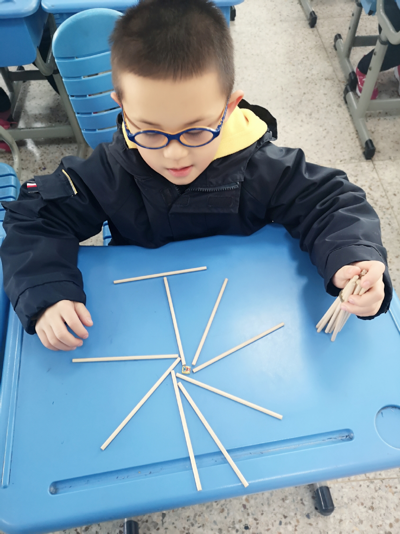12月12日下午,我们又开始了数字乐园的第二个游戏——智取小棒。你可别小看这一根根纤细的小棒,它给我们带来了无穷的乐趣!你看,我们用小棒摆出了多样的数字,搭出了美丽的图形,拼出了有趣的汉字,还有的小朋友直接玩起了火柴棒游戏。小棒让大家脑洞大开,玩得真开心呀!