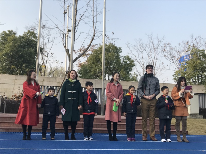 开幕式上,帅气的外教Allen老师也走上台去给孩子们送上了外语节的祝福,祝愿同学们能在外语节的各项活动中充分展示自己的才能、享受英语带来的快乐。
