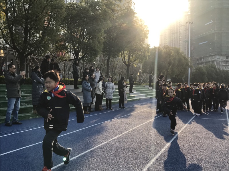 迎着朝阳,家长朋友们还来到操场,和孩子一起经历内容丰富的“阳光大课间”。做广播操、校园舞蹈操“生长吧”、身体素质操时,孩子们个个精神抖擞、动作到位;体育游戏时,孩子们团结协作,快乐多多……孩子们用心做,家长们认真学,比一比谁做得更好?亲子互动,其乐融融!积极锻炼的孩子们,纷纷点赞的家长成了青奥村小学操场上一道亮丽的风景。
